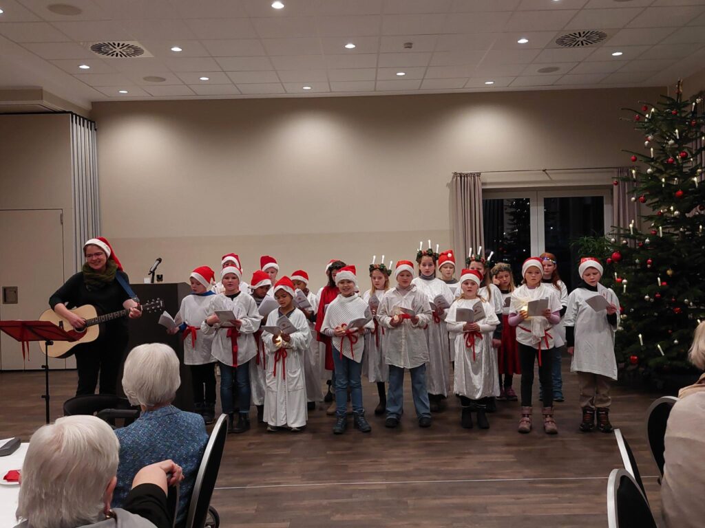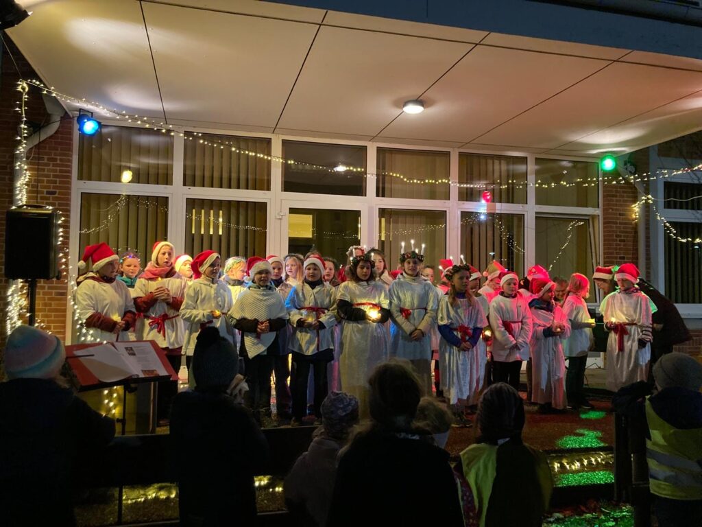 Den gute besuchten Anfang machte der Auftakt des diesjährigen „Lebendigen Adventskalenders“ mit vielen Eltern und Mitschülern auf dem abendlichen Schulhof am 1. Dezember. Es folgten zwei weitere Konzerte bei Seniorenfeiern in Lensahn und in Beschendorf, mit alten und neuen Liedern, zum Zuhören und zum Mitsingen. Die Kinder brachten mit ihren schönen Stimmen vielen Menschen große Freude und verbreiteten Weihnachststimmung. „Wenn man een Lüchn in de Oogen vun de Kinner sieht, denn isWiehnachen wiss nicht wiet.“ In diesem Sinne: Frohe Weihnachten!